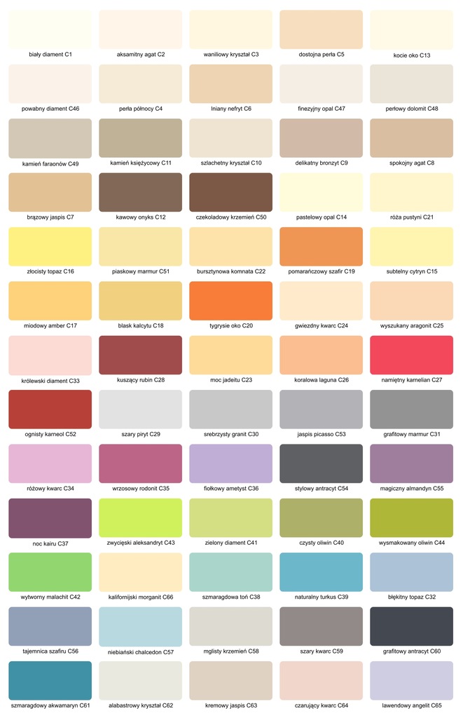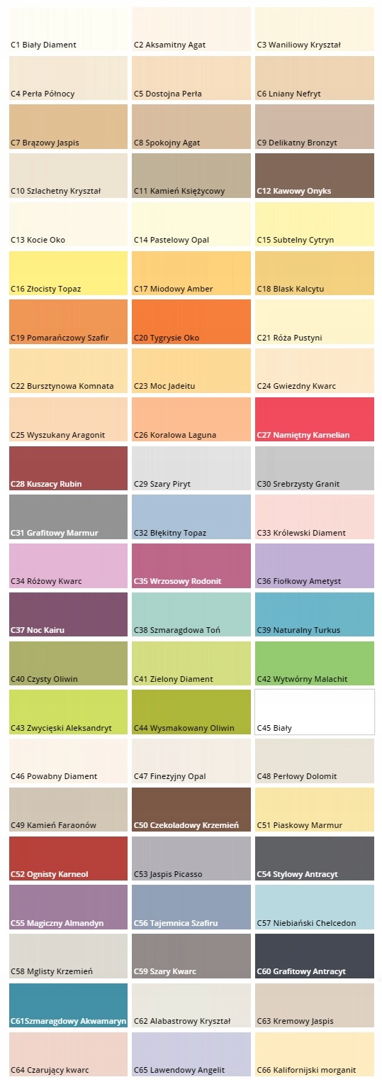 Wzornik magnat ceramic paleta kolorów dostępne kolory żeby powiększyć. Są to farby plamoodporne które mają bardzo wiele ciekawych kolorów. Ctrl c1 biały diament c2 aksamitny agat c3 waniliowy kryształ c4 perła północy c5 dostojna perła c6 lniany nefryt c7 brązowy jaspis c8 spokojny agat c9 delikatny bronzyt c10. Polityka prywatności oświadczenie o zgodności kolorów sklepy dla architekta newsletter regulamin.
